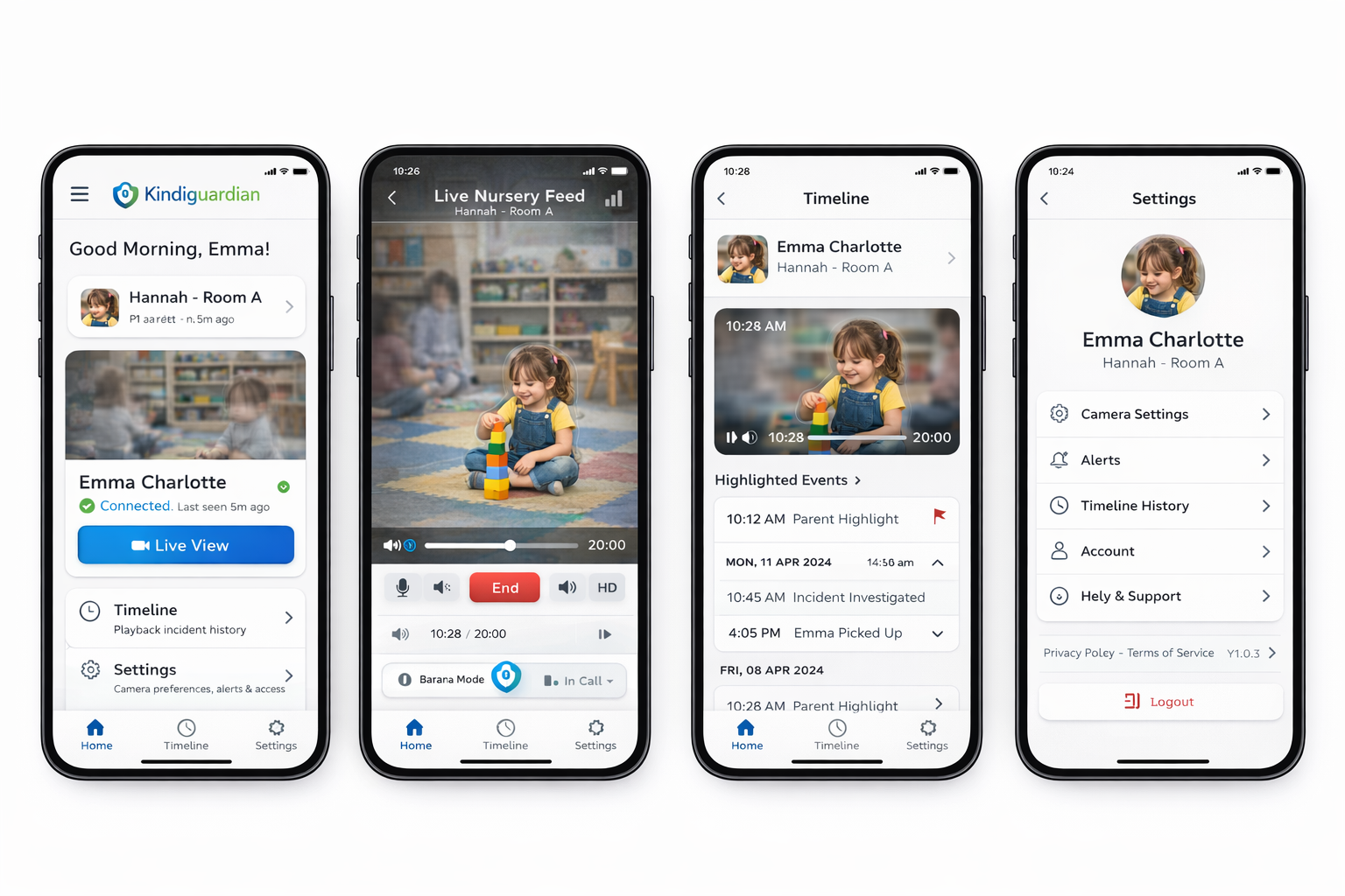 Kindiguardian combines a nursery-grade camera, on-site AI processing, and a secure parent app into a seamless privacy-first experience.